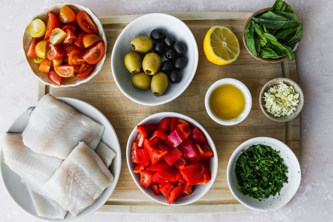 These ingredients are straightforward and budget-friendly. I usually spend around $20-25 for everything, depending on where I shop. Pro tip: If cod isn’t available, you can swap it for other white fish like haddock or tilapia—they work just as well in this easy Mediterranean fish dish.