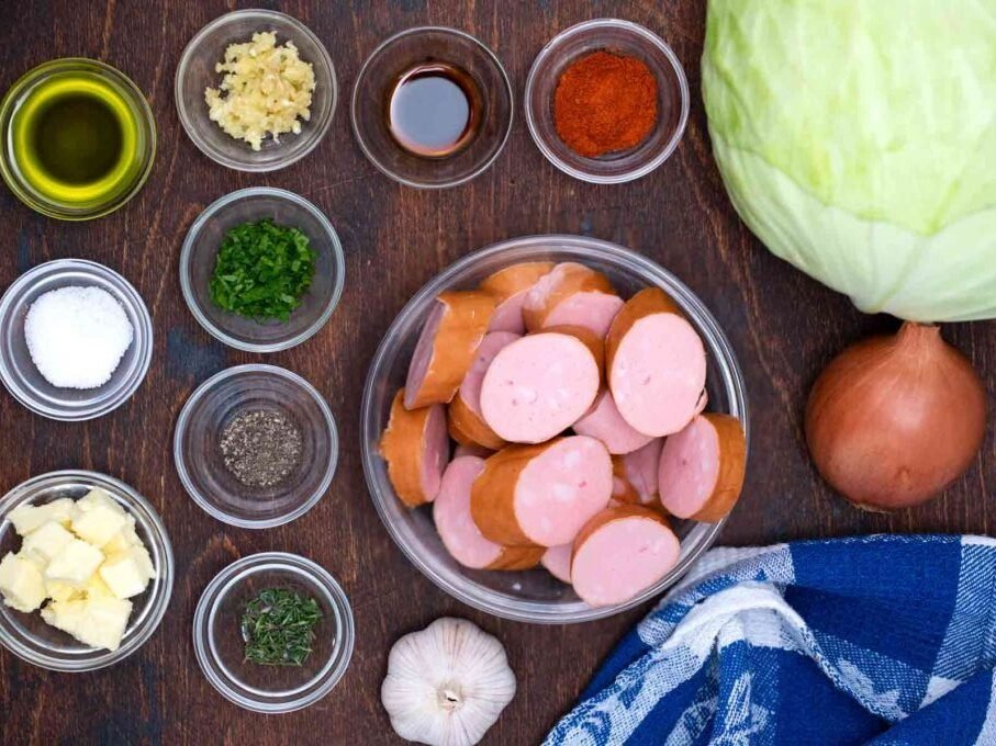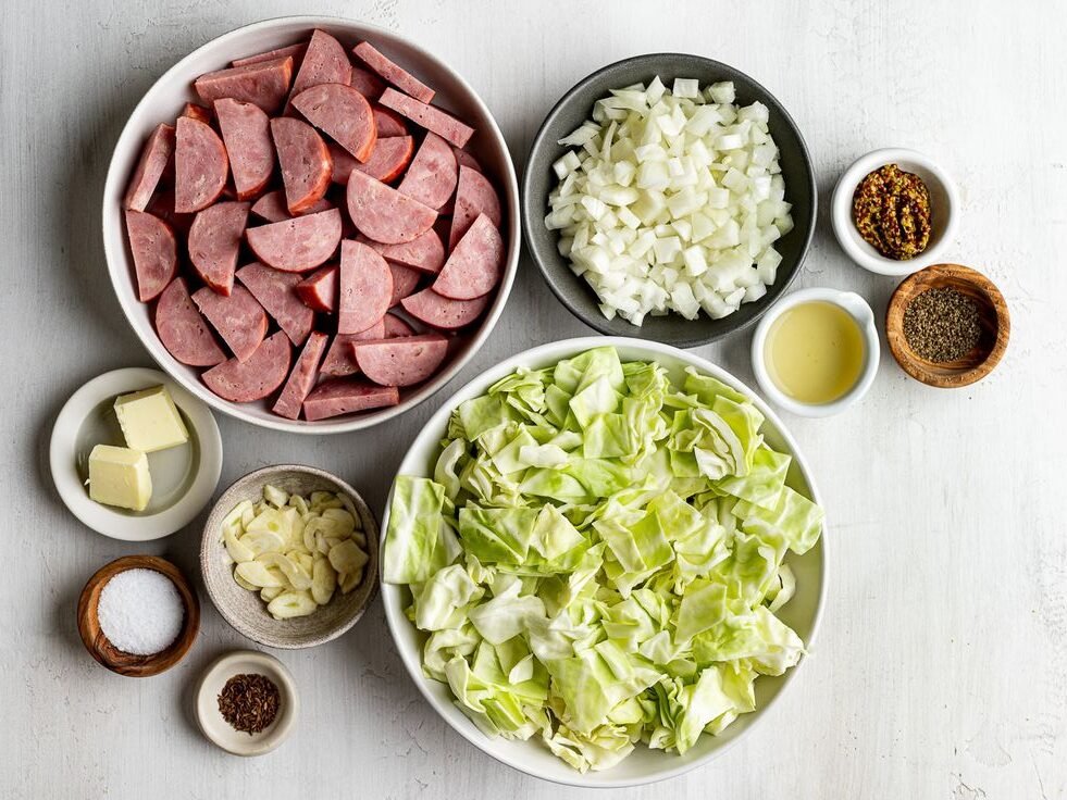 Ingredients for Polish-Style Pan-Fried Sausage and Cabbage